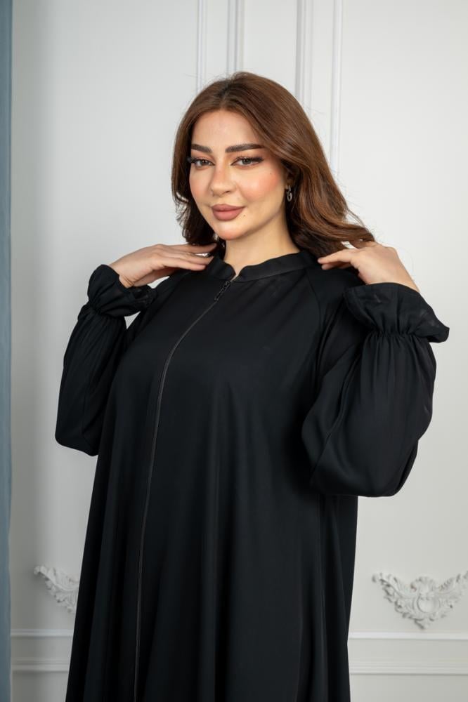 عباية كلوش راقية ساده بمسكه على الكم القماش:حريرالقصة: كلوشالقفلة : سحاب طرحه : مع طرحه نقاب : مع نقاب إرشادات الغسيل: يغسل يدوي بالماء الباردإرشادات الكي: استخدام المكواه